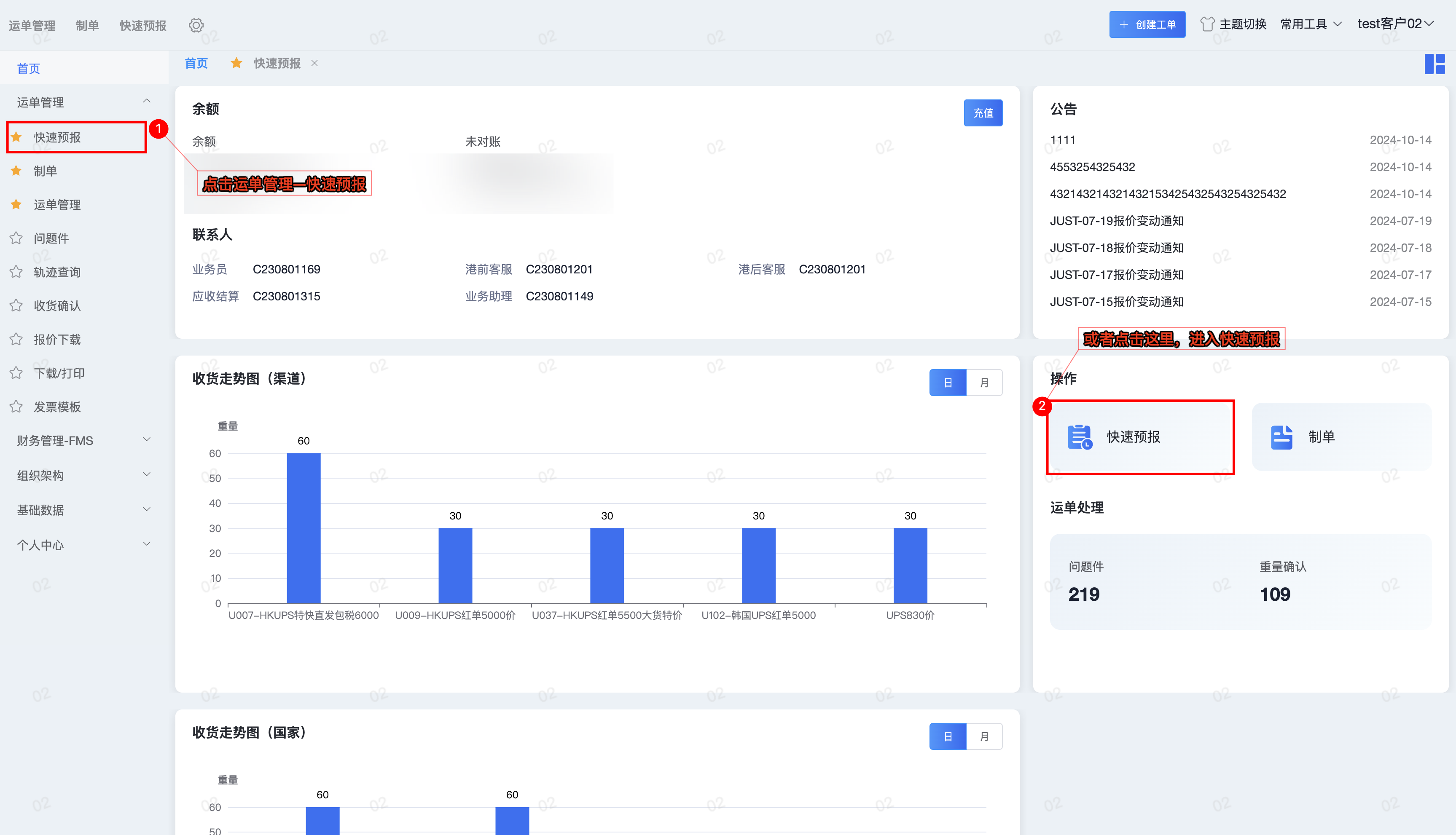 登录系统后,您可以通过两种方式进入运单预报界面:
